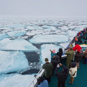We aim to sail into Hinlopen Strait, home to bearded seals, ringed seals, and polar bears. At the entrance, there is even the possibility to spot blue whales. After cruising among the ice floes of Lomfjord in the Zodiacs, you can view the bird cliffs of Alkefjellet, with their thousands of Brünnich’s guillemots. On the east side of Hinlopen Strait, we may attempt a landing on Nordaustlandet. Here we may see reindeer, pink-footed geese, and walruses. We can take an alternate route if ice prevents entry into Hinlopen.