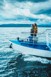 Navegaremos, inicialmente, con dirección Sur a través de la Bahía Ushuaia desde donde se obtiene una vista panorámica de la ciudad, las montañas y los valles.